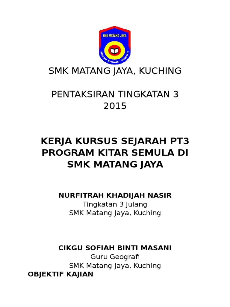 Pendahuluan kajian kerja kursus ini perlu dilakukan kerana ia merupakan syarat untuk pensijilan penilaian menengah rendah ( pmr ).